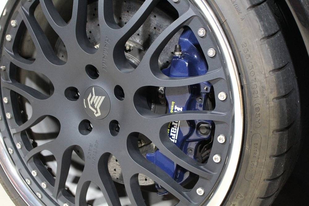 フルエアロをまとい、カーボンブレーキに、ハーマンの21インチのアルミを装着。