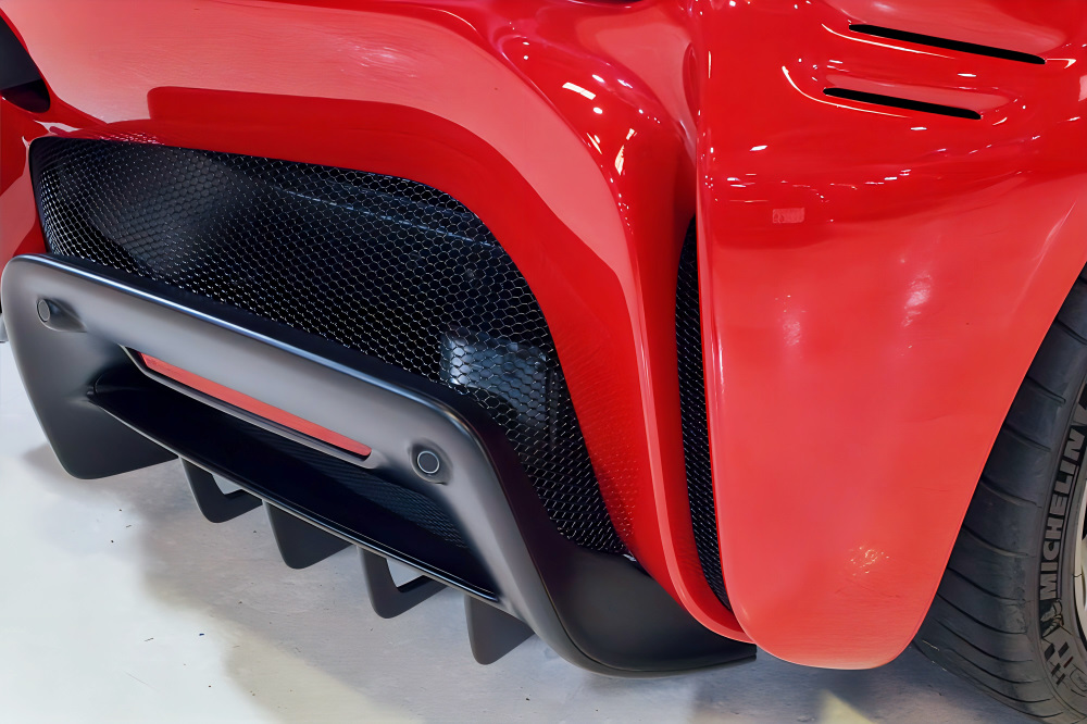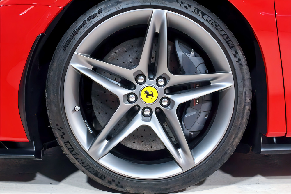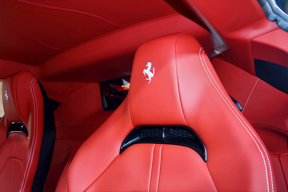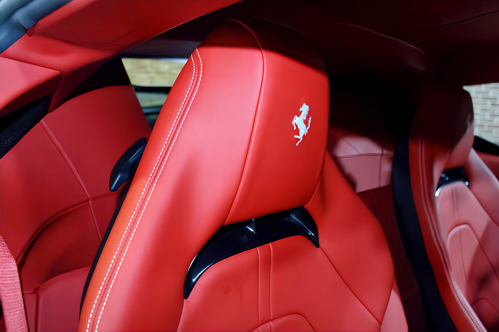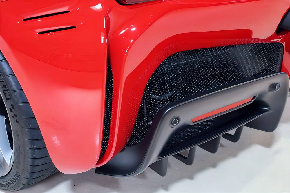スクーデリア・フェラーリ・フェンダーエンブレム、カーボンファイバー製サイド・エア・スプリッター、ブラック・スポーツエグゾーストパイプが、より精悍でレーシーな佇まいを演出します。