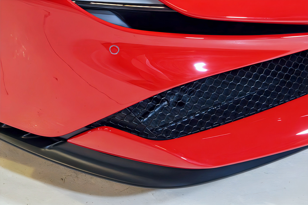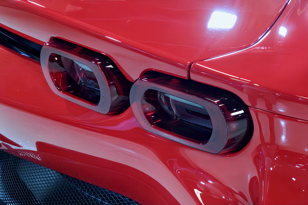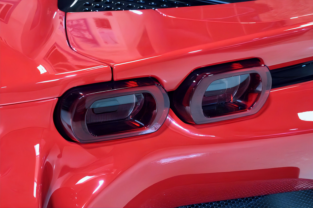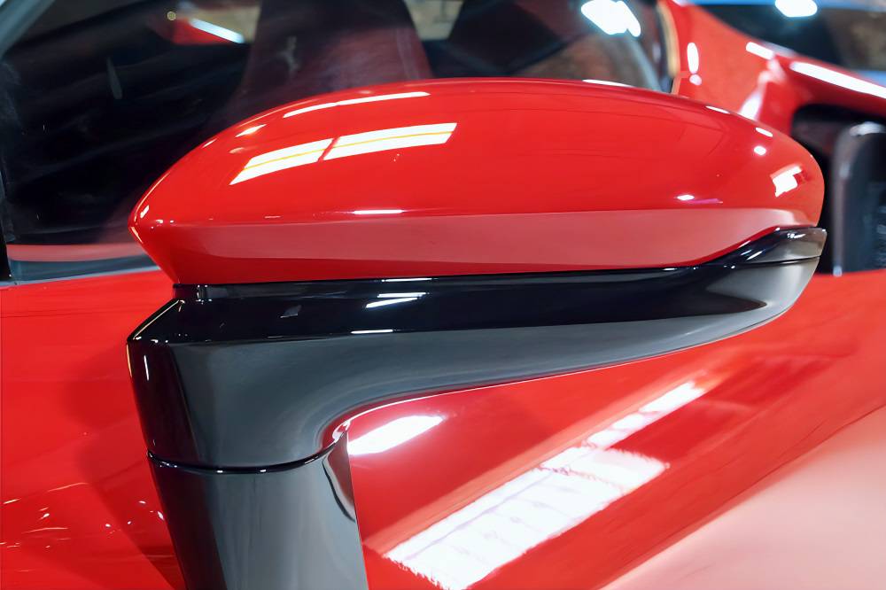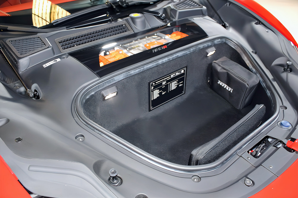 スクーデリア・フェラーリ・フェンダーエンブレム、カーボンファイバー製サイド・エア・スプリッター、ブラック・スポーツエグゾーストパイプが、より精悍でレーシーな佇まいを演出します。