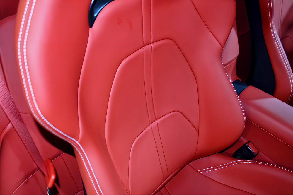 跳馬刺繍入りヘッドレスト、カラード・セーフティベルト、スペシャルステッチなど、細部に至るまで“選び抜かれた一台”であることを物語る仕様です。