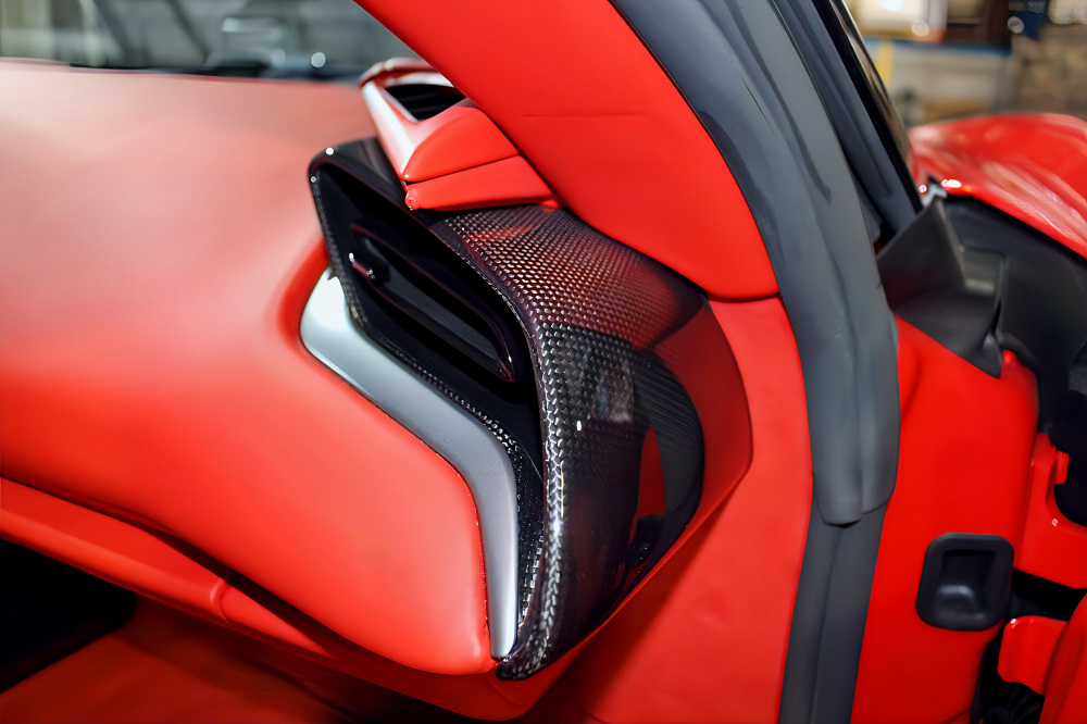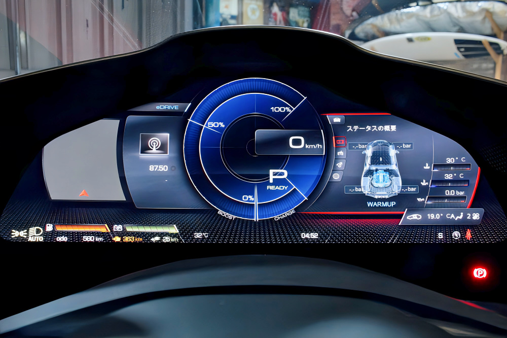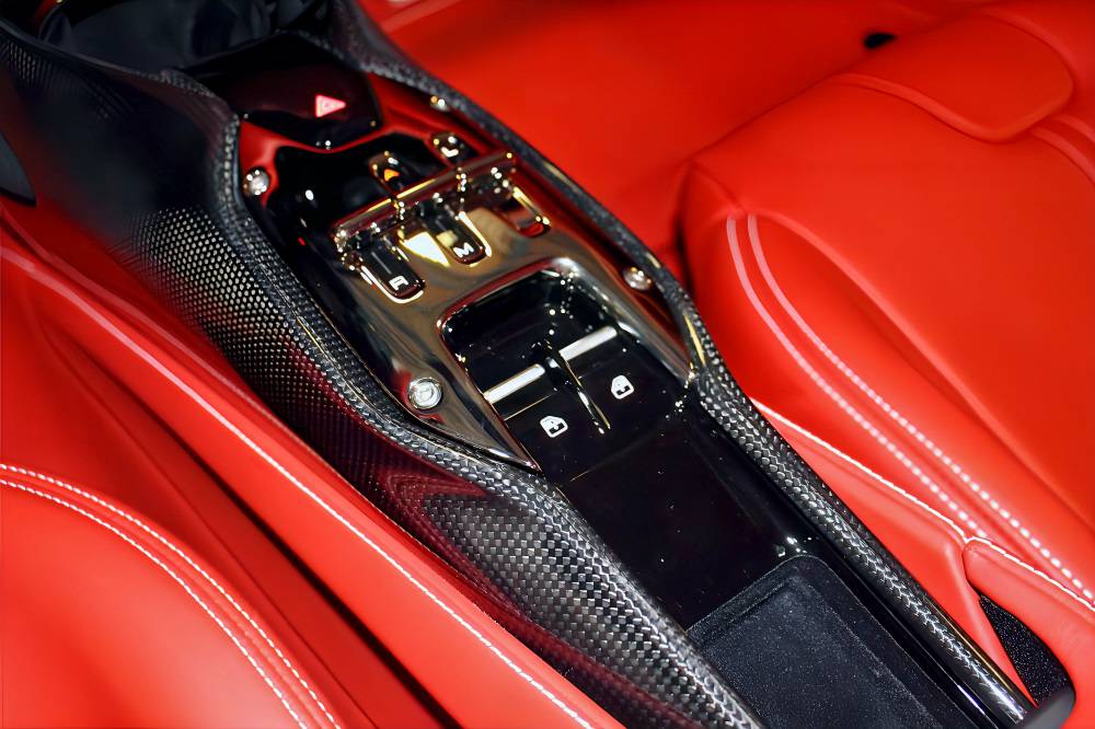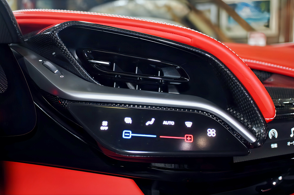 LED付きカーボンファイバー・ドライバーゾーン、自動防眩サイドミラー、前後パーキングセンサーなど、快適性・安全性も抜かりありません。