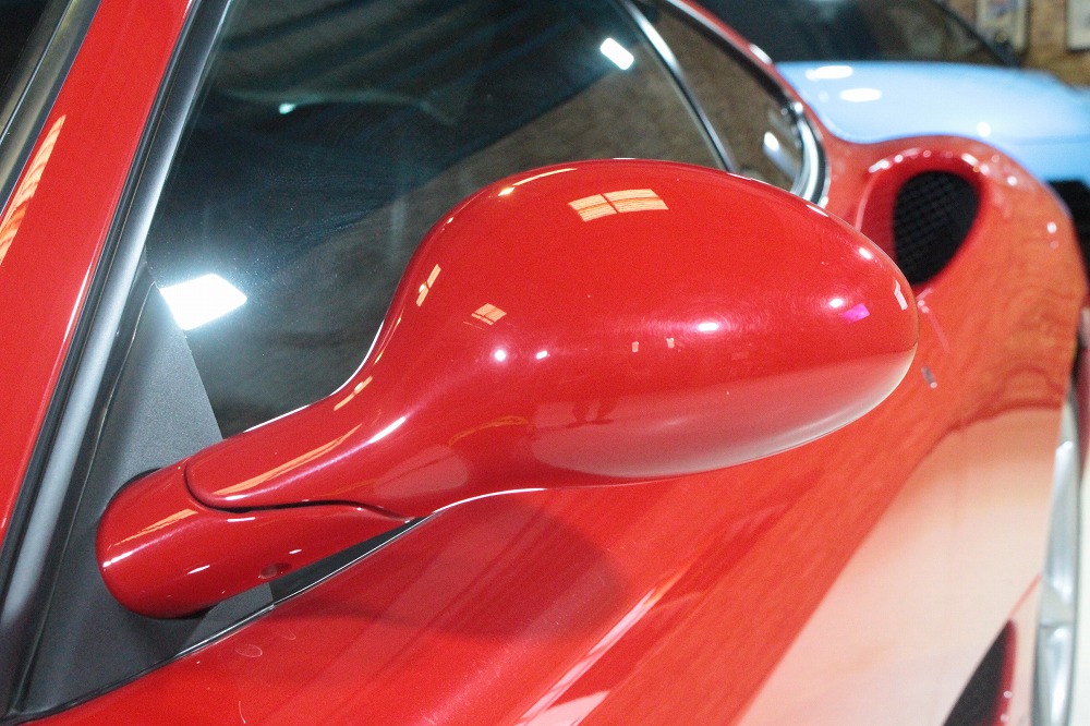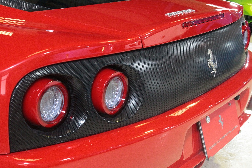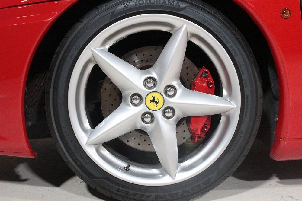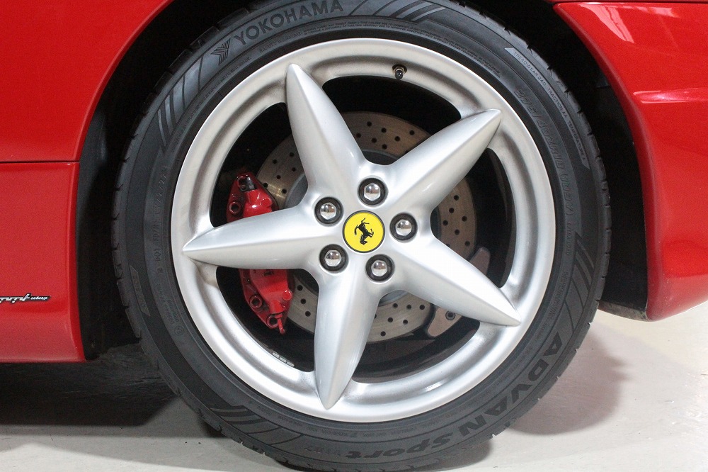 こちらの車両は、フェラーリ伝統のロッソコルサに身を包み、純正アルミホイールとチャレンジグリルを備えたスポーティな仕様。