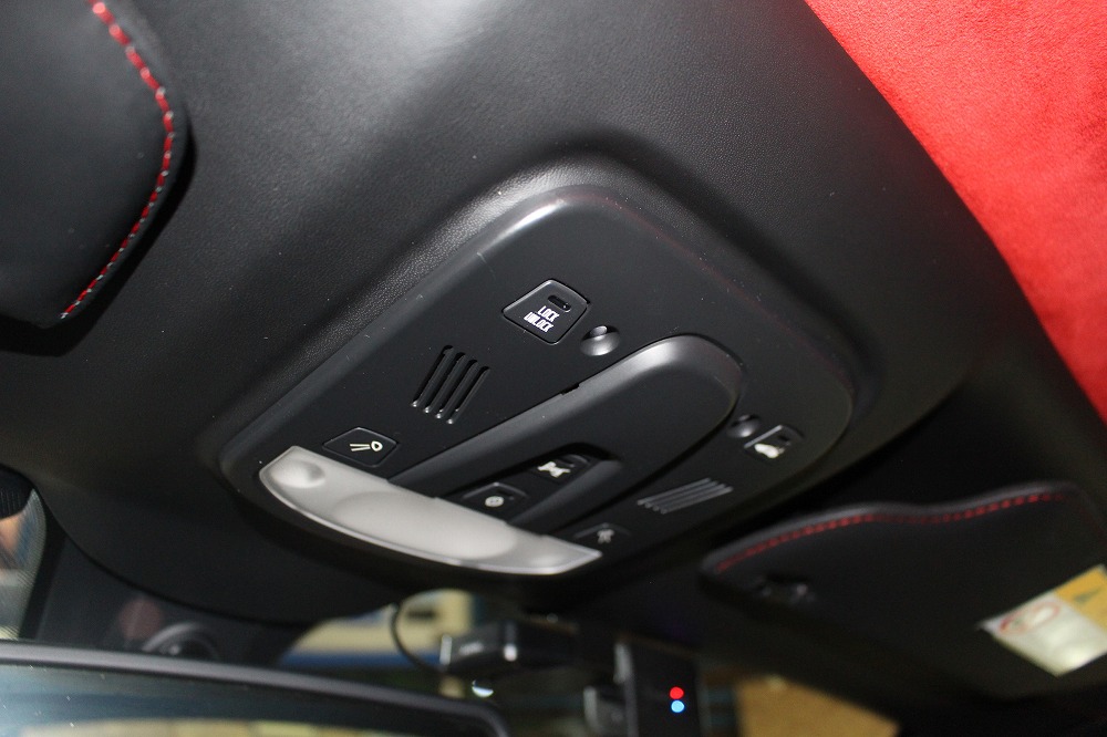 レッドのアルカンターラルーフライナーやカーボンパーツがスポーティさを際立たせています。