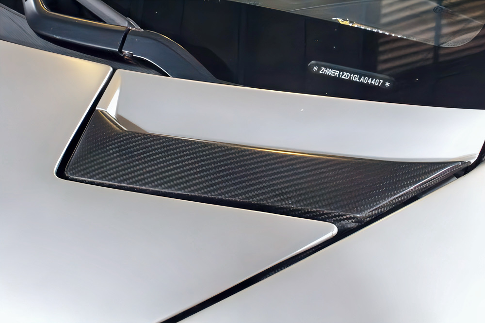 マットとグロスが織りなす特別なツートーンエクステリアは、光の角度によって表情を変え、ルーフからエンジンフードへと流れるPirelliレッドラインがその造形美をより際立たせます。