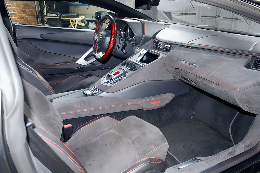 走行性能は、700psを誇るV12 6.5L自然吸気エンジン、7速ISR、フルタイム4WD、カーボンセラミックブレーキ、プッシュロッド式サスペンションが生み出す圧倒的な安定感とダイナミズム。アヴェンタドールの本質を余すことなく堪能できる一台です。