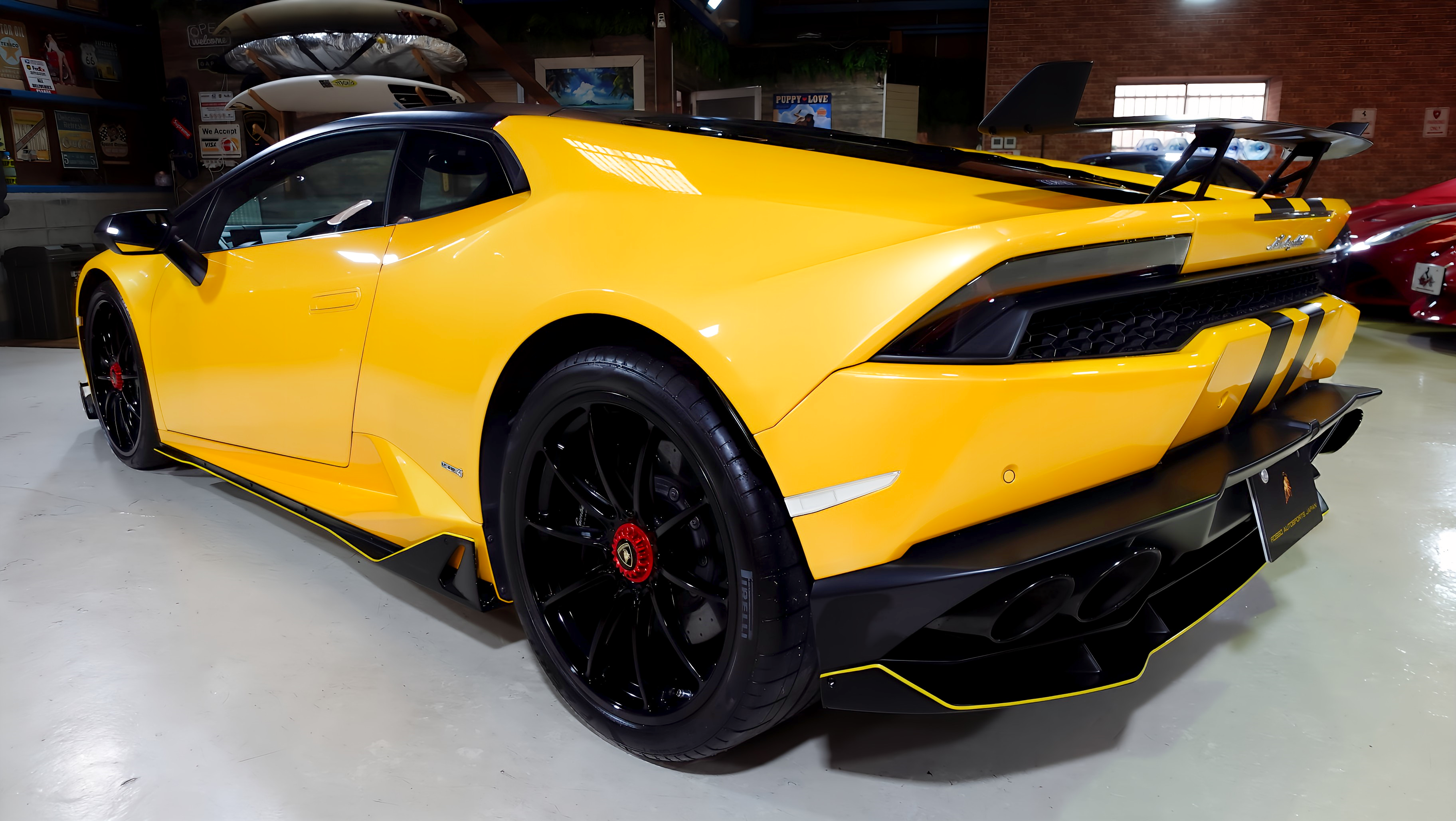 鮮烈なジャッロ・マイダスのボディにエアロダイナミックキットを纏った、存在感あふれるウラカン LP610-4が入庫しました。