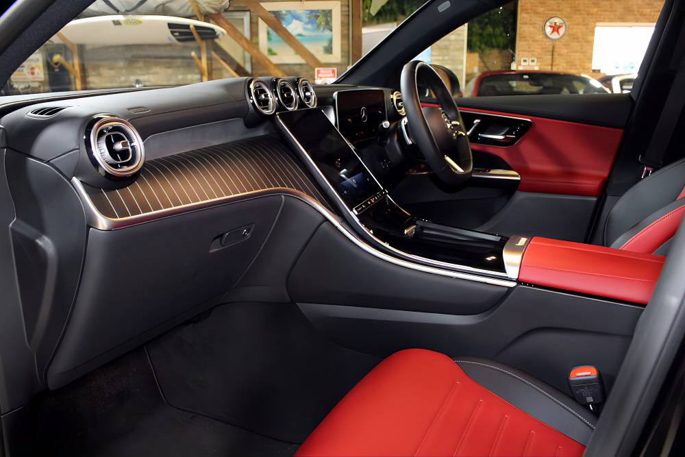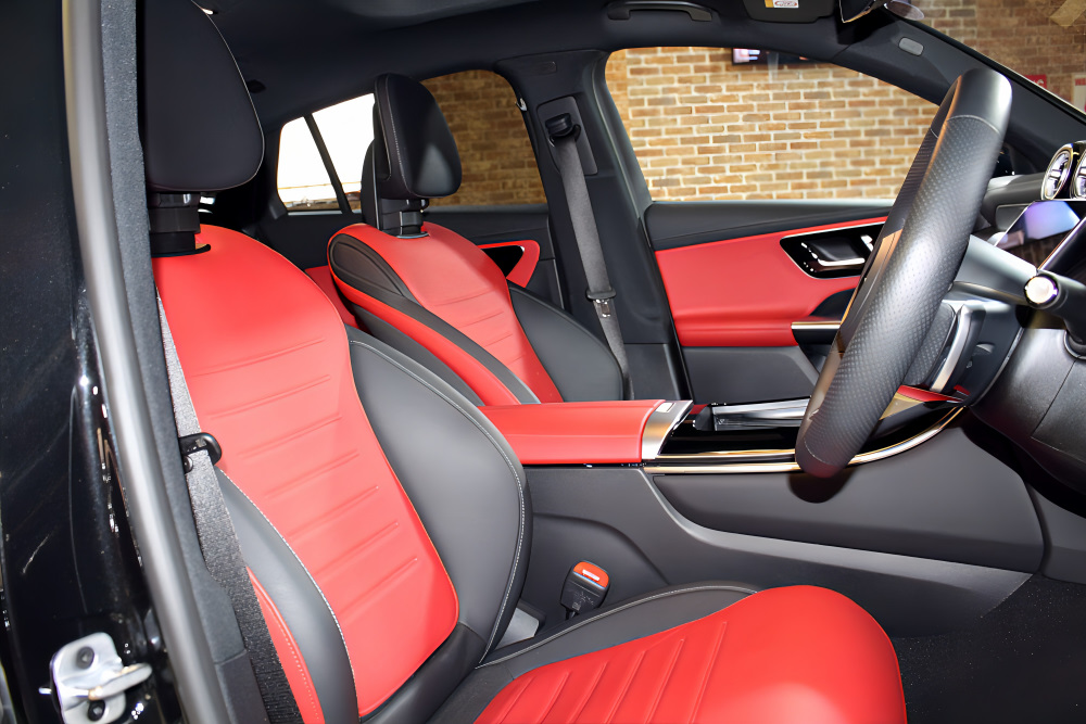 スポーティで存在感のあるエクステリアに、レッド×ブラックのAMGスポーツシートが映える上質なインテリア。